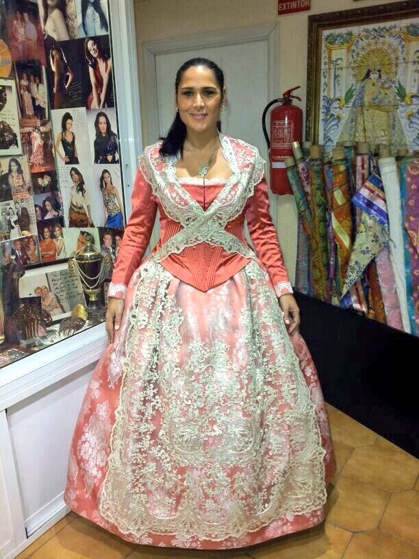 Rosa López ha subido esta foto suya a Twitter mostrando el traje de fallera en su última prueba antes del desfile mañana en la Ofrenda con la Falla San Isidro.