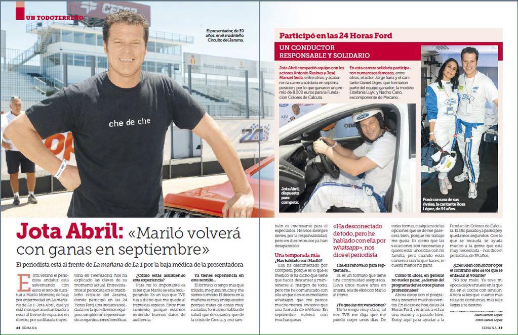 Rosa López participa activamente en la Carrera Solidaria 24 Horas de Ford en el Circuito del Jarama a favor de la Fundación Bobath. Ha hecho de reportera para Autopista y conduce uno de los coches durante un trayecto. Fotos de la Fundación Bobath y Autopista en Twitter.
