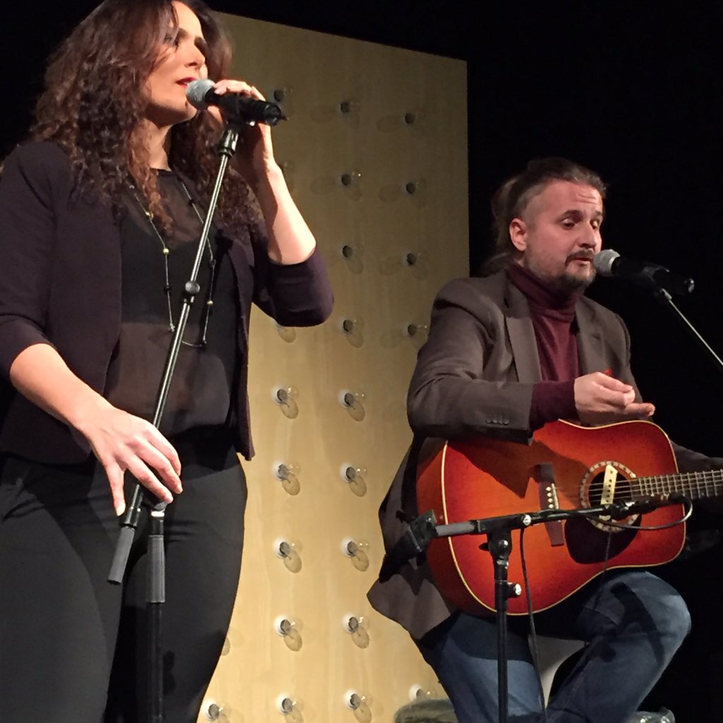 Imagen de Rosa López en el ensayo de su canción "Puedes creer" con Alfonso Samos, la cual estrena esta noche en la presentación de la campaña de ImaginaMás, "Ponte en mi piel". Foto de ImaginaMás